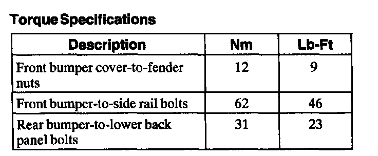 Torque Specifications: