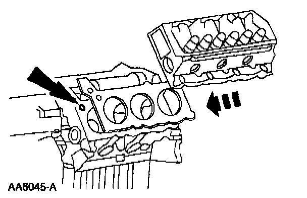 30. Install anew RH and LH head gasket on the cylinder block with the small hole to the front of the engine and position the RH and LH cylinder head.