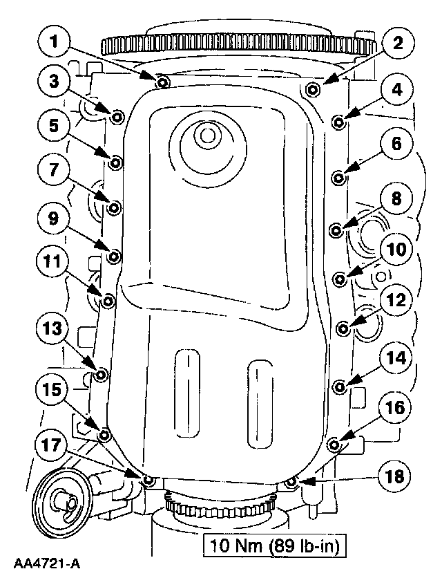 12. Note: If the rear main bearing cap is not installed within four minutes, remove the sealant and reapply.