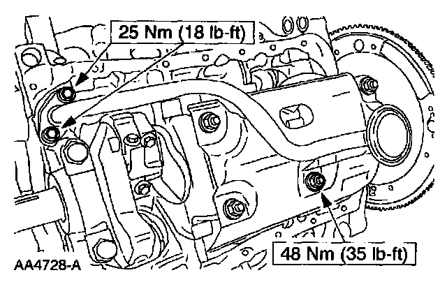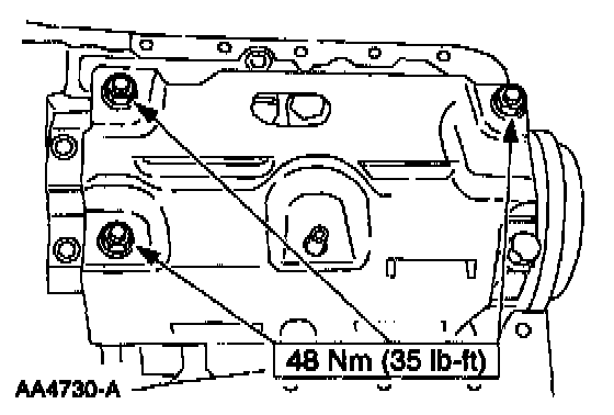 - Tighten long bolts to 45 Nm (33 ft. lbs.), then tighten an additional 175 - 185 degrees.