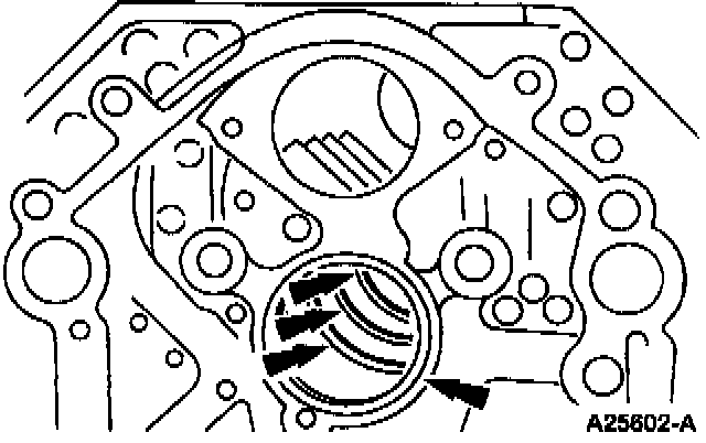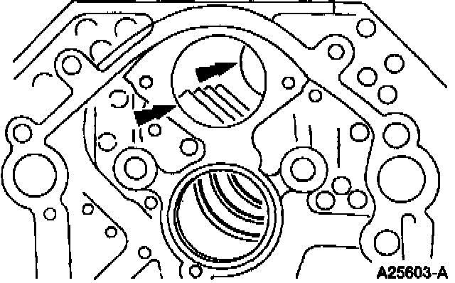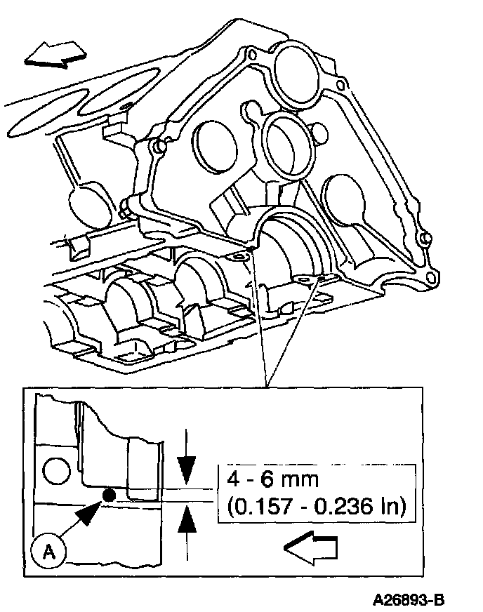 Clean the rear main bearing cap sealing area thoroughly and apply sealant to the (A) rear main bearing cap to cylinder block parting line.