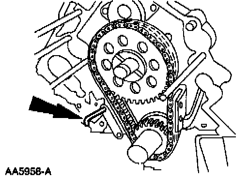 26. Install the timing chain, the camshaft sprocket and the crankshaft sprocket as an assembly.