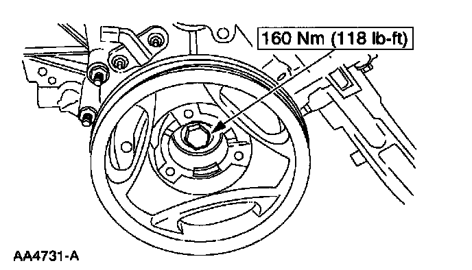 40. Apply a bead of sealant to the keyway in the crankshaft damper and use the special tool to position and install the crankshaft damper.