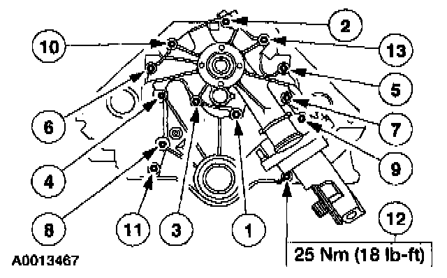 - Stage 1: Tighten to 25 Nm (18 ft. lbs.).
