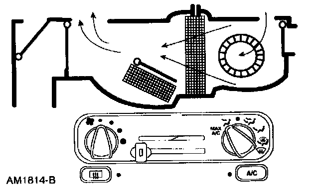 ^ The temperature control knob setting will determine the amount of air that is directed through the heater core and the amount that bypasses the heater core.