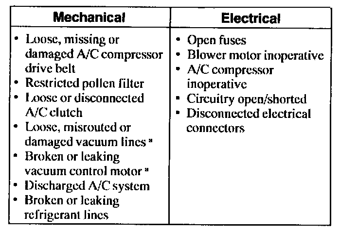 1. Verify the customer's concern by operating the climate control system to duplicate the condition.2. Inspect to determine if one of the following mechanical or electrical concerns apply:
