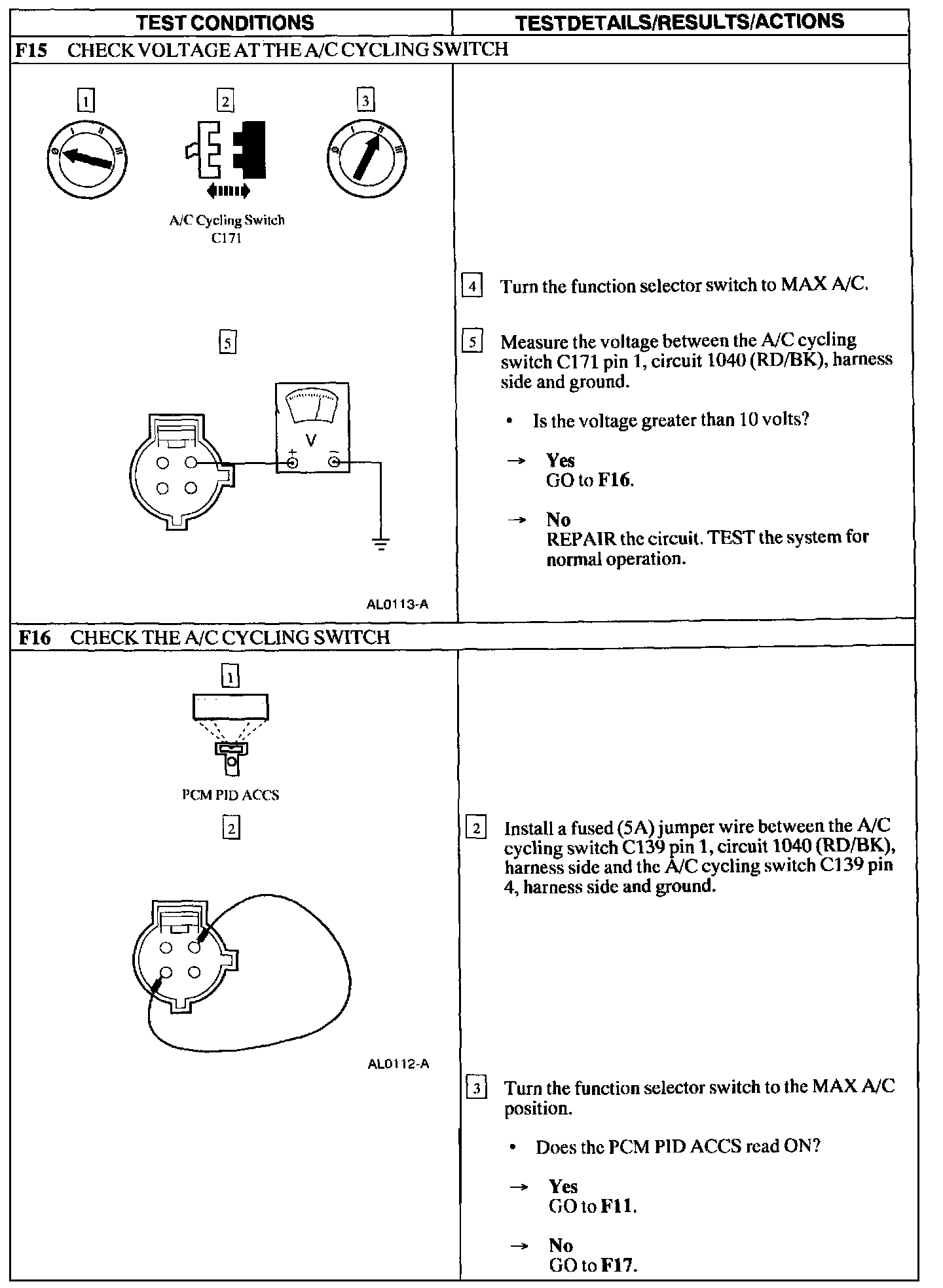 Test F: A/C Does Not Operate or Does Not Operate Correctly