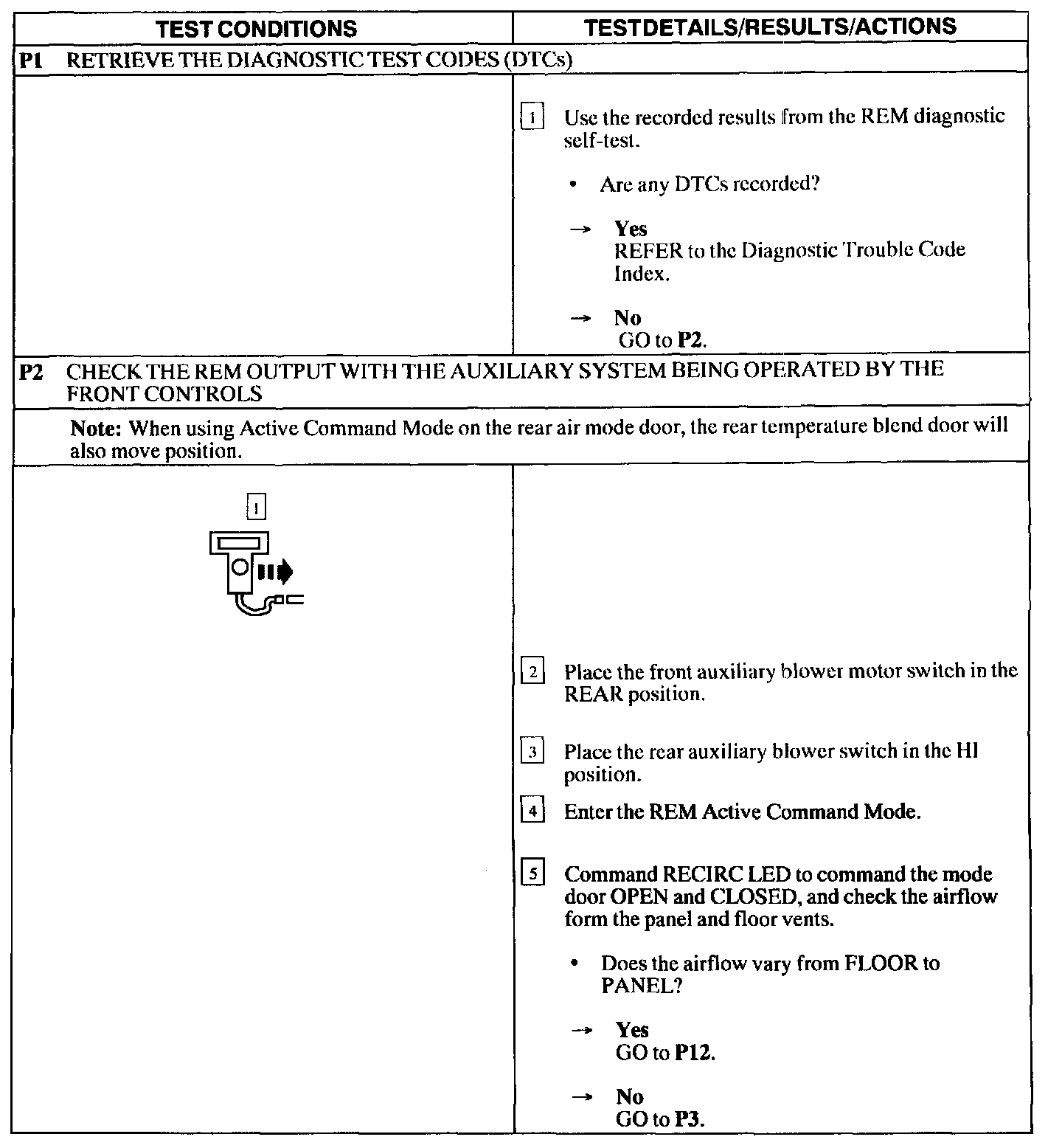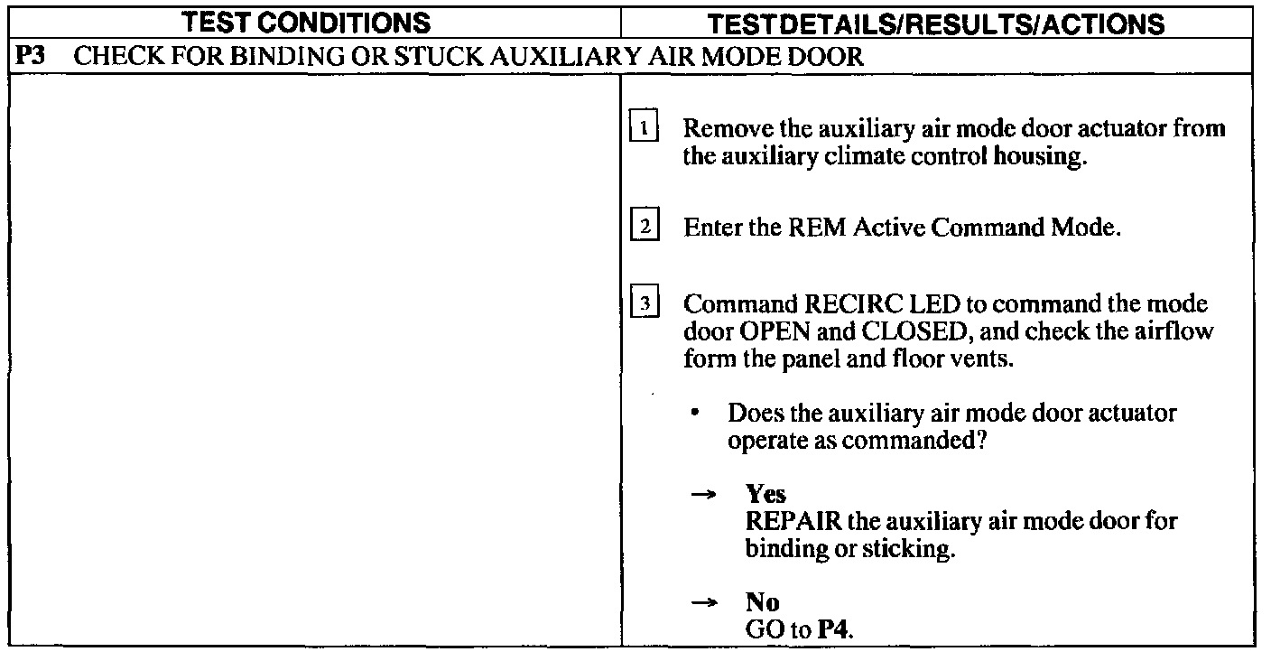 Test P: Panel/Floor Controls Do Not Operate Using The Front/Rear Auxiliary Climate Controls