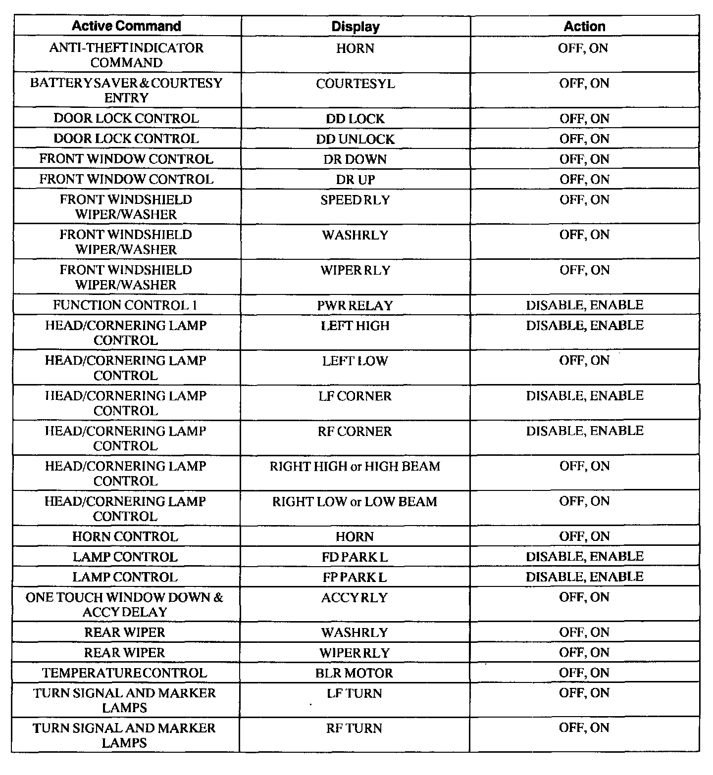 Front Electronic Module (FEM) Active Command Index