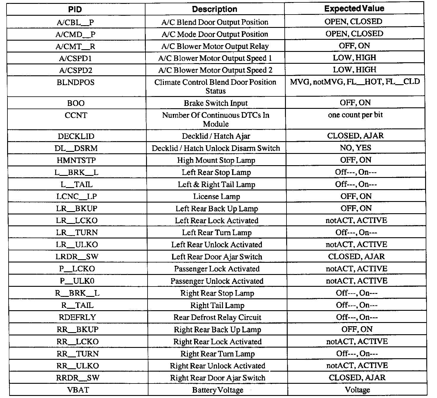 Rear Electronic Module (REM) Parameter Identification (PID) Index