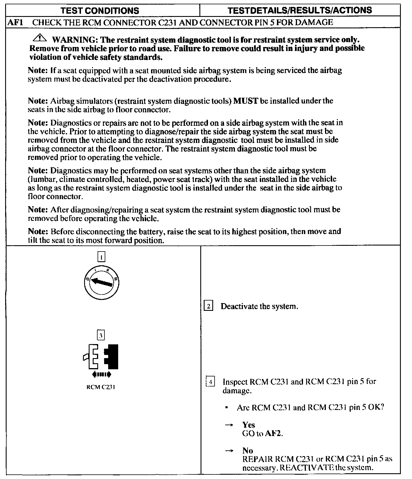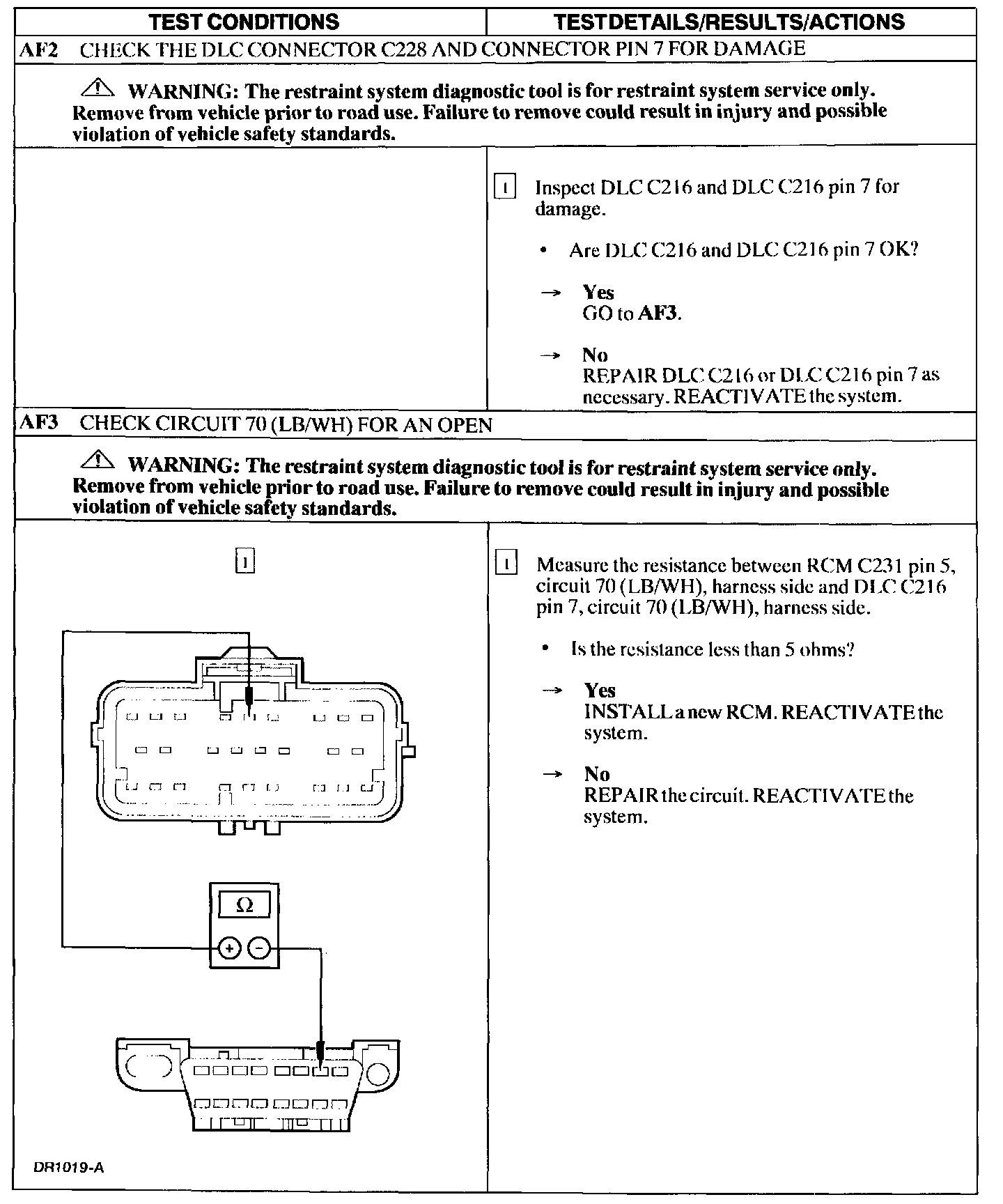 Tests AF: No Communication With the Restraints Control Module