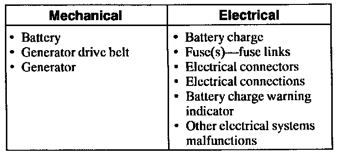1 The charging system warning indicator will illuminate with the ignition switch in RUN and the engine OFF.