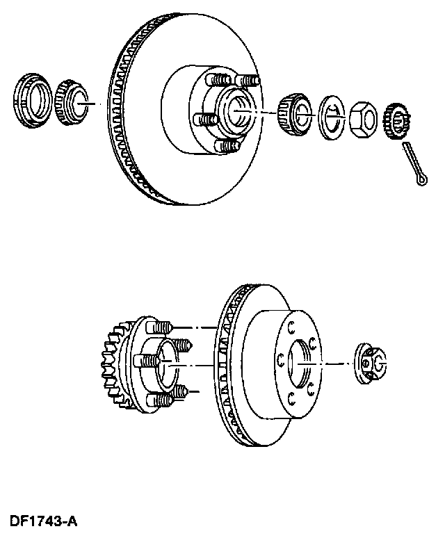 ^ On vehicles with inner and outer bearings, inspect the bearings and cups for wear or damage. Adjust or install new bearings and cups as necessary.