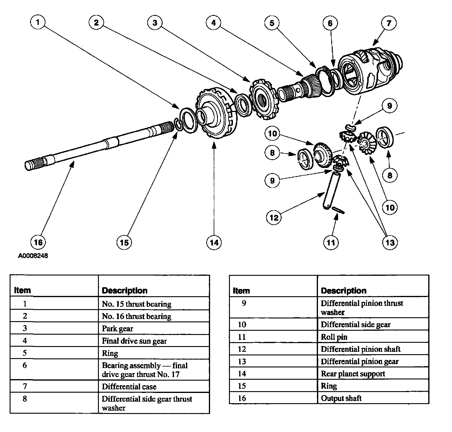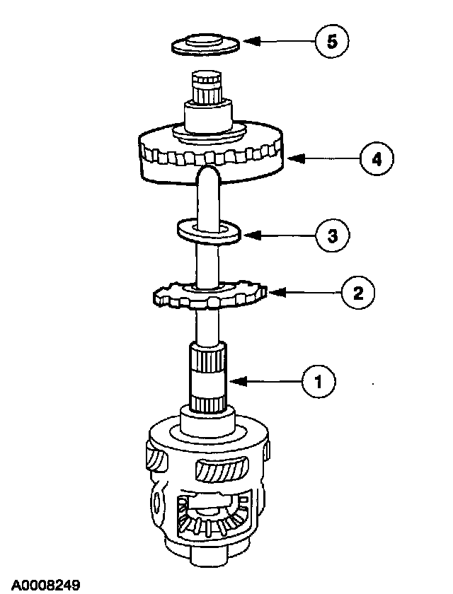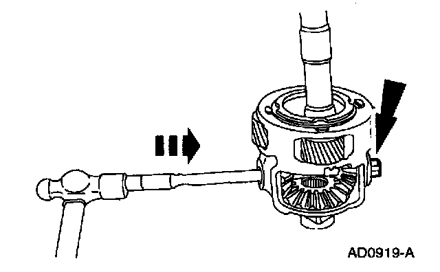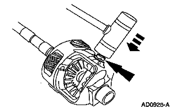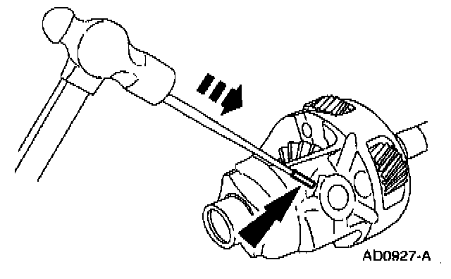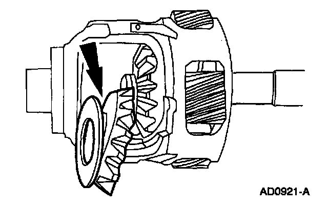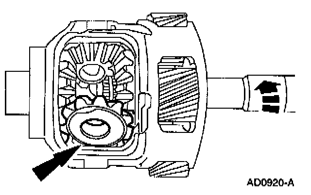 4. Rotate the output shaft and remove the differential pinion gear, and the differential pinion thrust washers.
