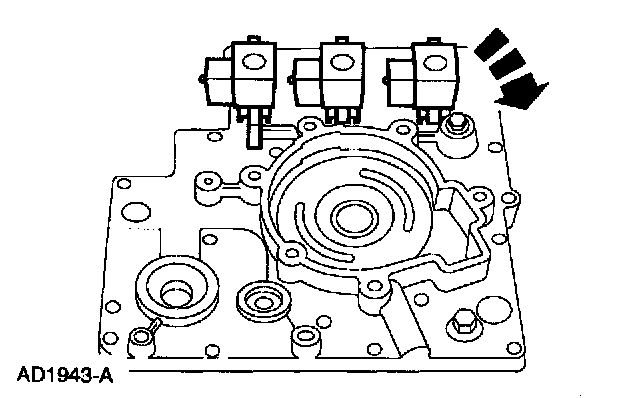 Install new O-rings and install the shift solenoids by pressing down and rotating them until they lock in place.