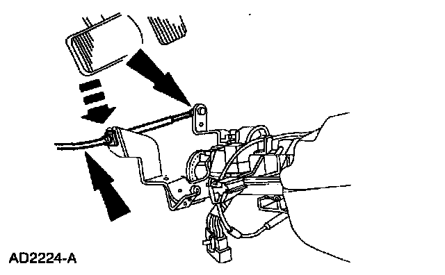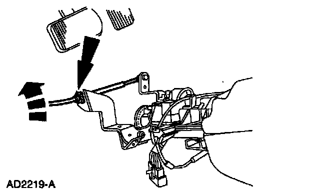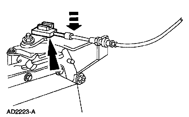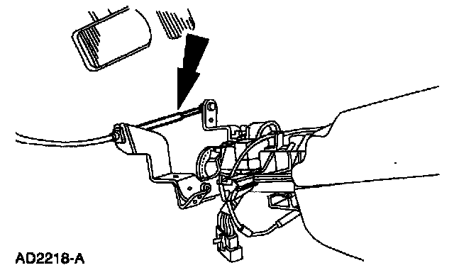 Note: Whenever a steering column, engine or transaxle removal is required, do not remove the shift cable from the retaining brackets. The brackets must be removed with the shift cable attached.