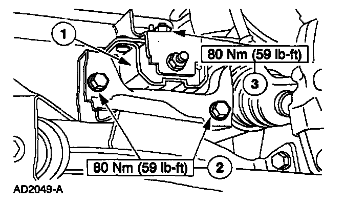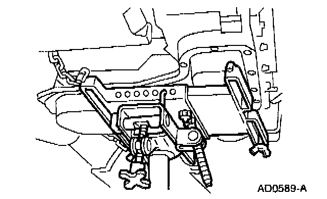 5. CAUTION: Do not excessively raise the engine. Over-extension of the tripod CV joint could result in separation of internal parts, causing failure of the halfshafts.