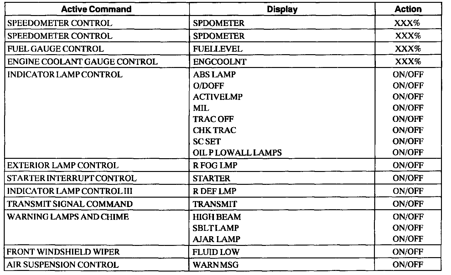 Instrument Cluster Active Command Index
