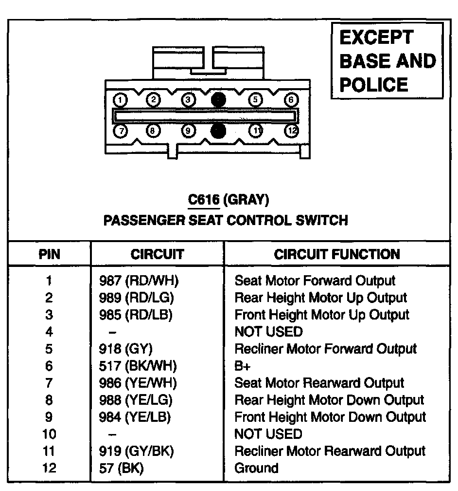 Passenger Seat Control Switch