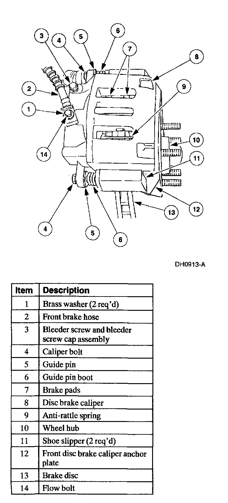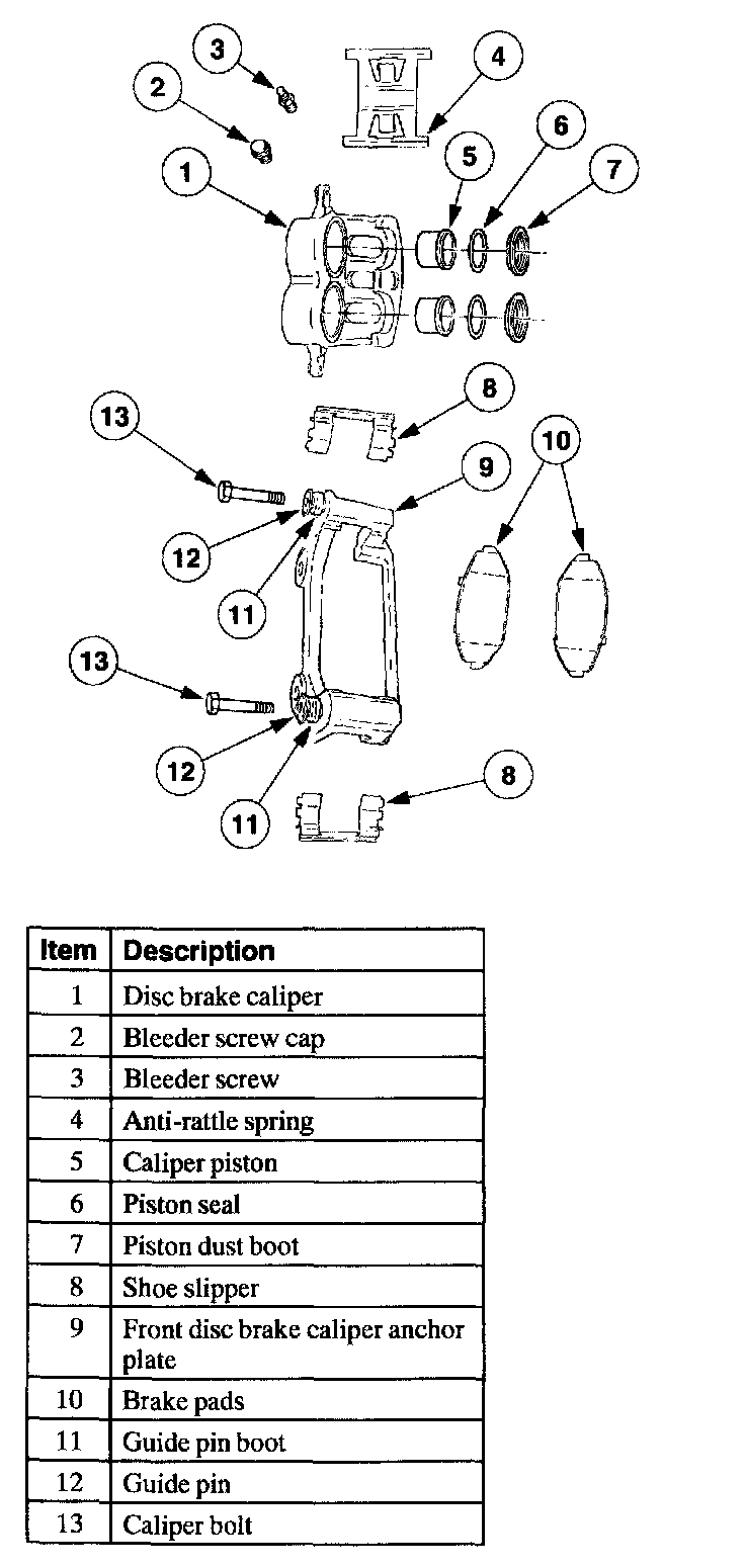 Front Disc Brake Caliper Components