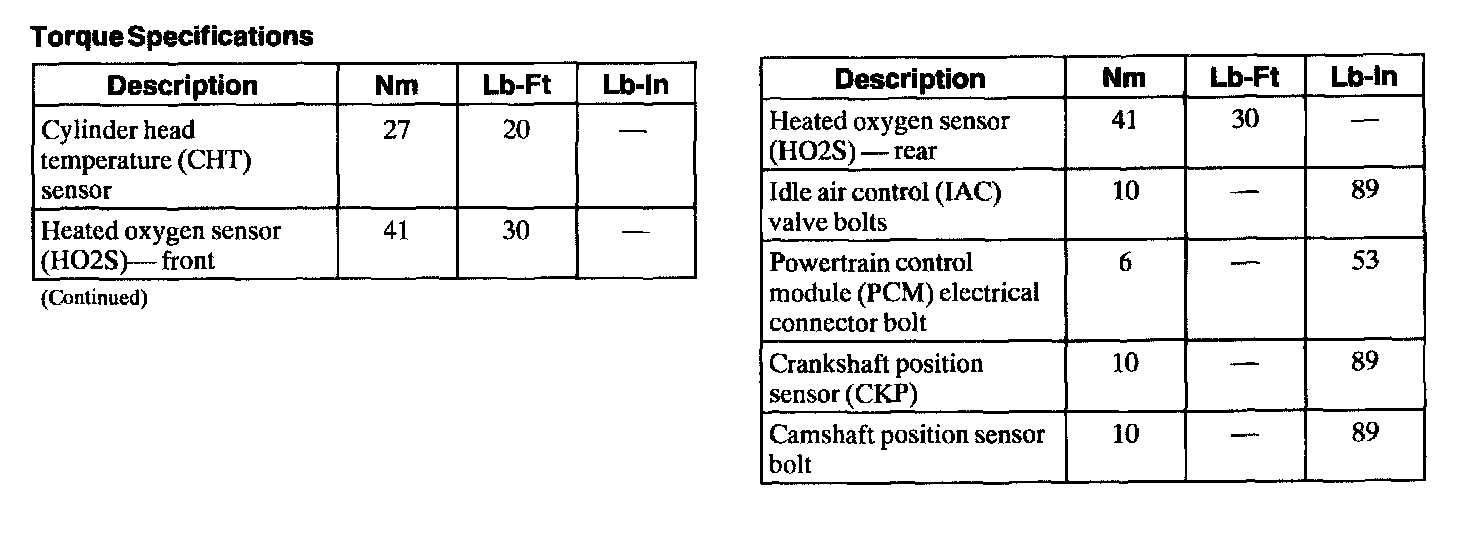 Torque Specifications: