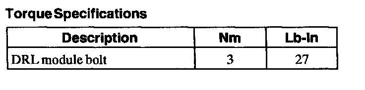 Torque Specifications: