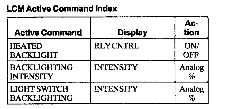 Lighting Control Module (LCM) Active Command Index