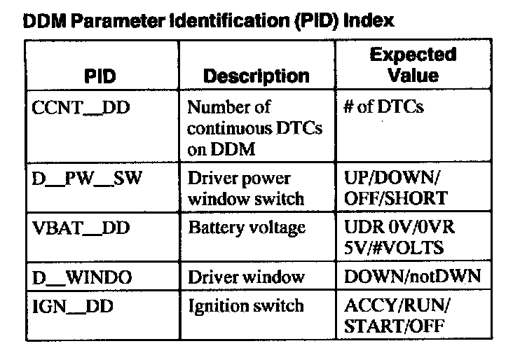 Driver Door Module (DDM) Parameter Identification (PID) Index