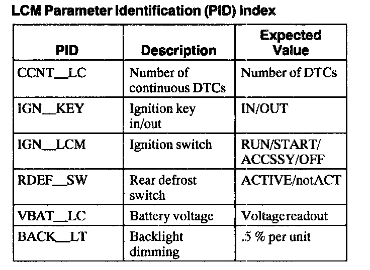 LCM Parameter Identification (PID) Index: