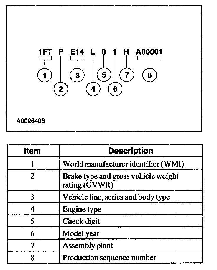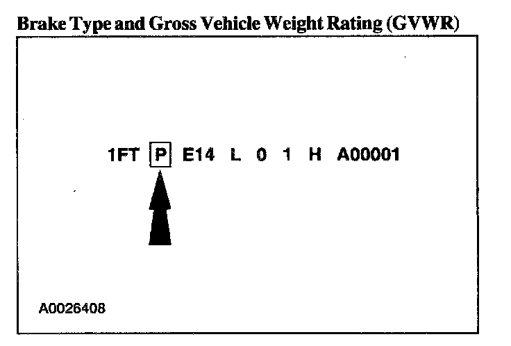 The fourth VIN position is the vehicle brake type and Gross Vehicle Weight Rating (GVWR) code. All vehicles use hydraulic brakes.