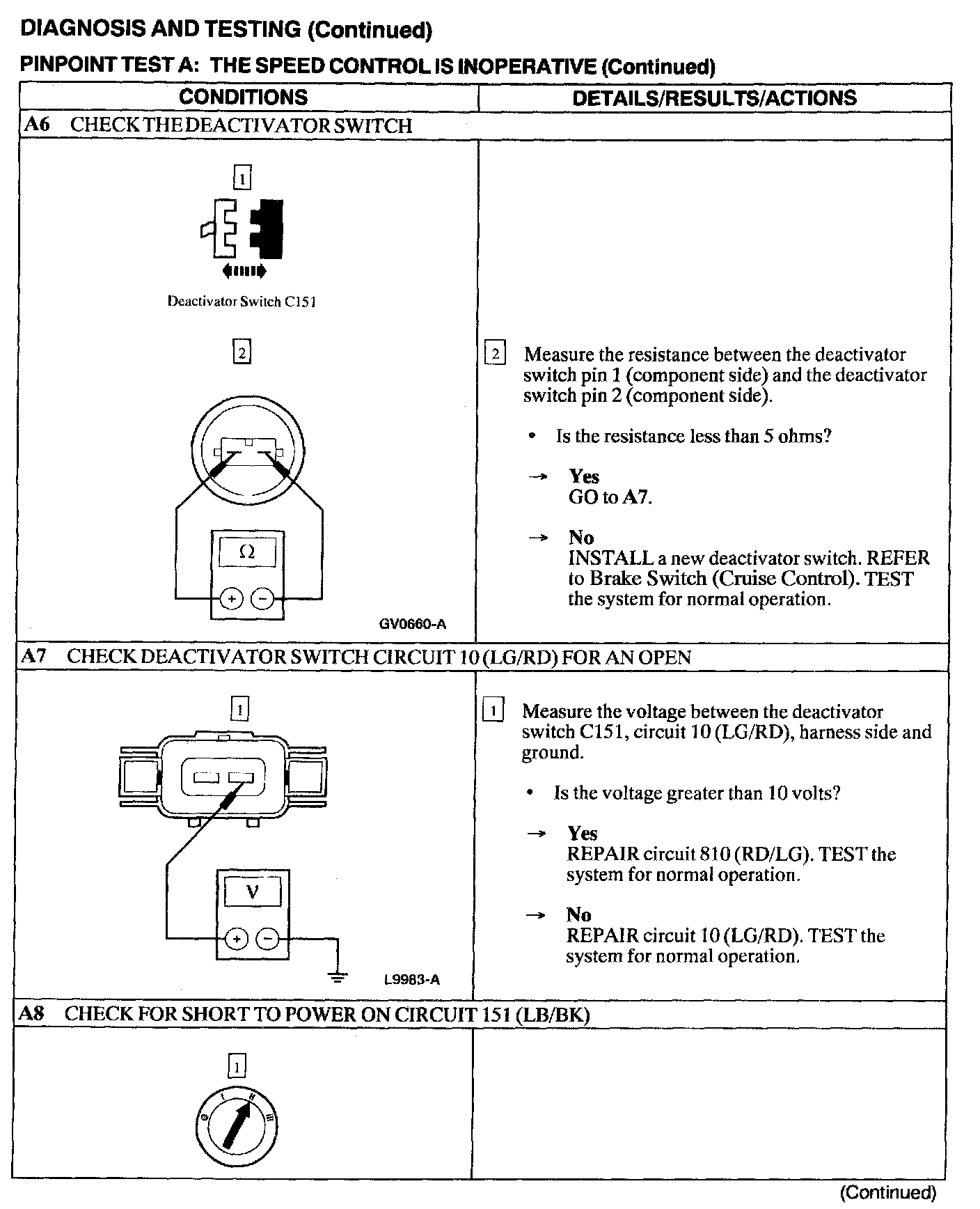 Test A: Speed Control Is Inoperative
