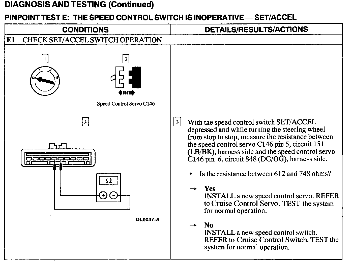 Test E: Speed Control Switch Is Inoperative - Set/Accel