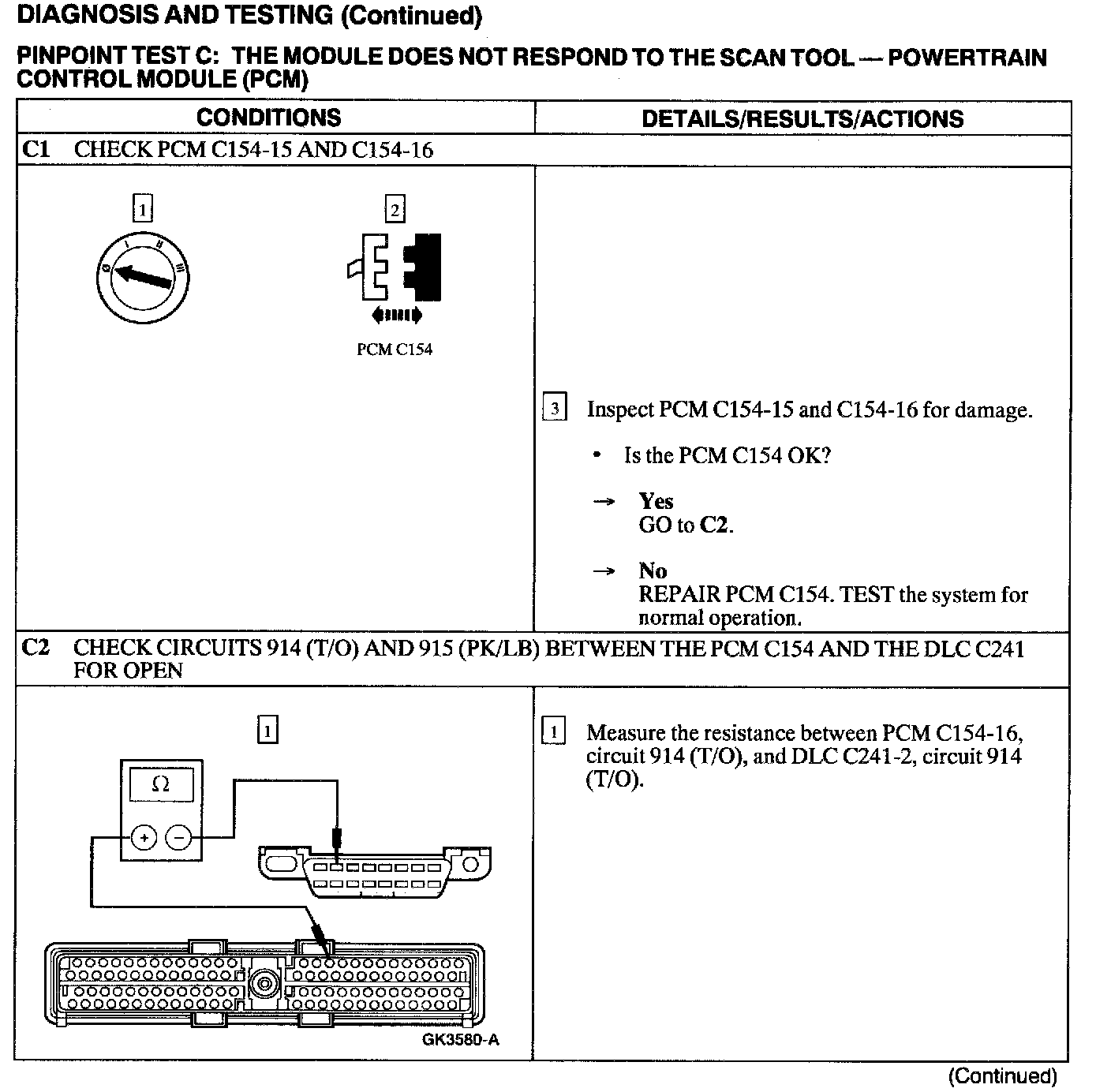 Test C: Module Does Not Respond to the Scan Tool - PCM