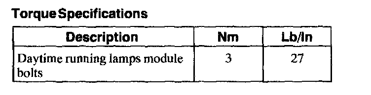 Torque Specifications: