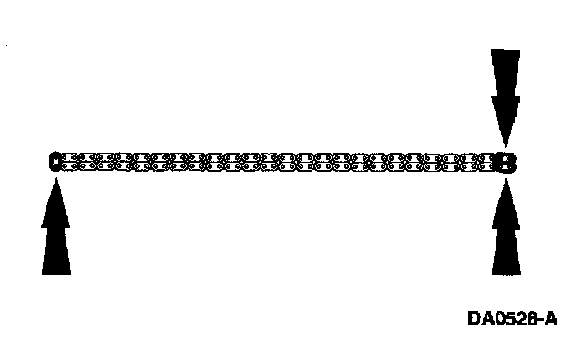 If copper links are not visible, mark two links on one end and one link on the other end, and use as timing marks.