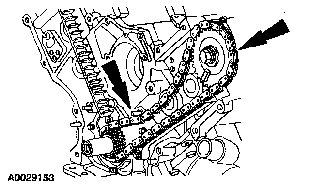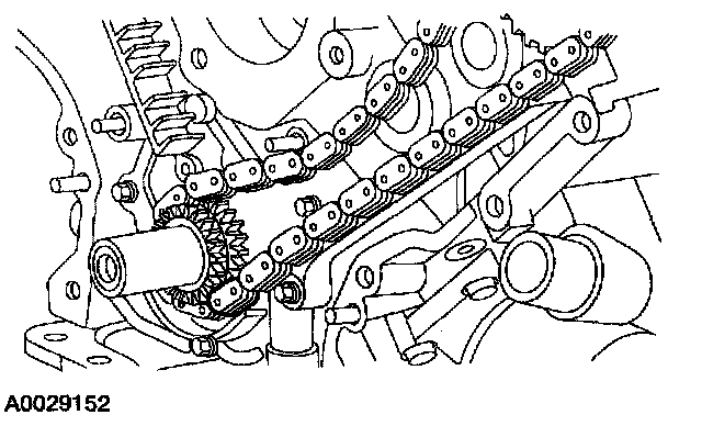- RH (outer) timing chain on the crankshaft sprocket.