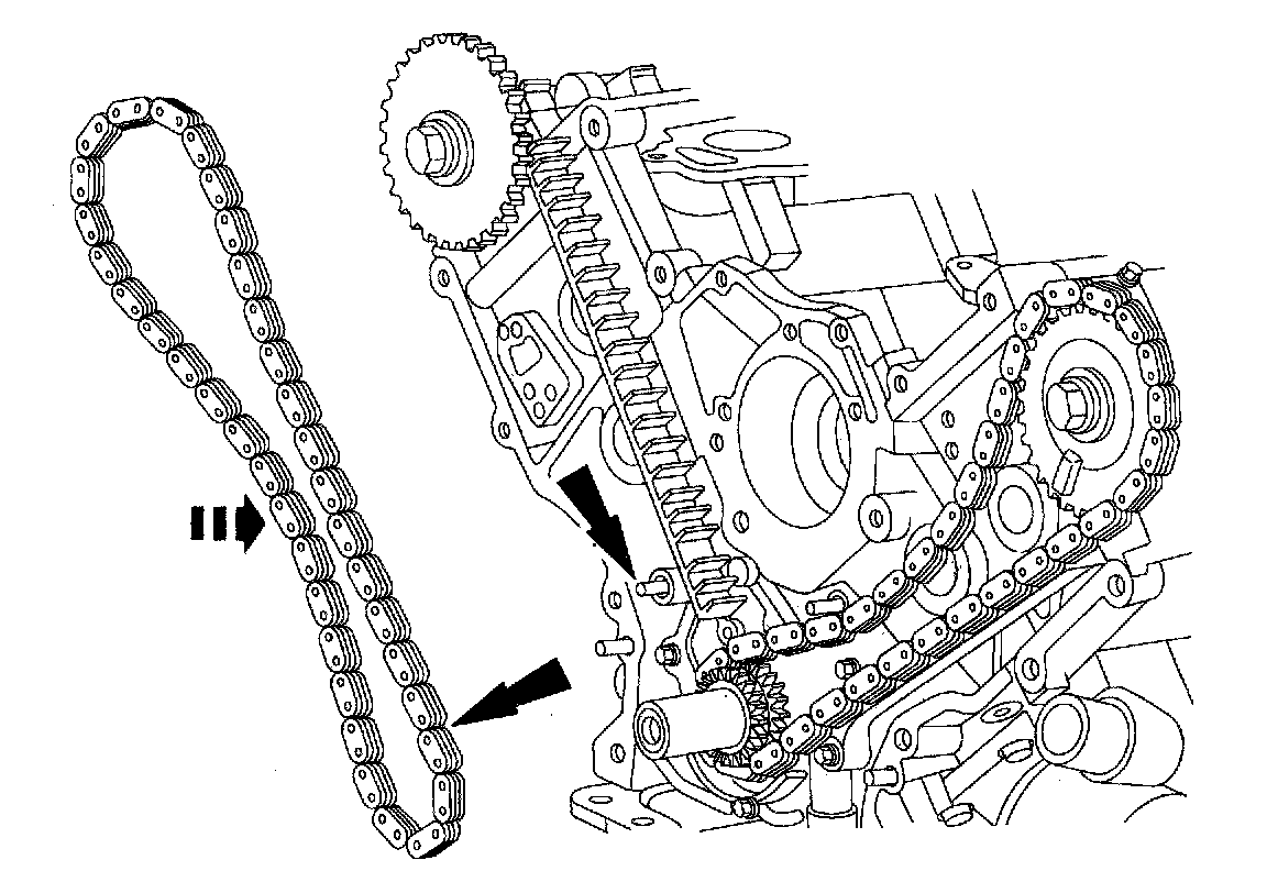 CAUTION: Since the engine is not free-wheeling, if the crankshaft or the camshafts are moved in any manner during removal and installation the crankshaft and camshaft must be resynchronized.CAUTION: Timing chain procedures must be followed exactly or damage to valves and pistons will result.