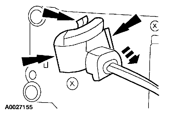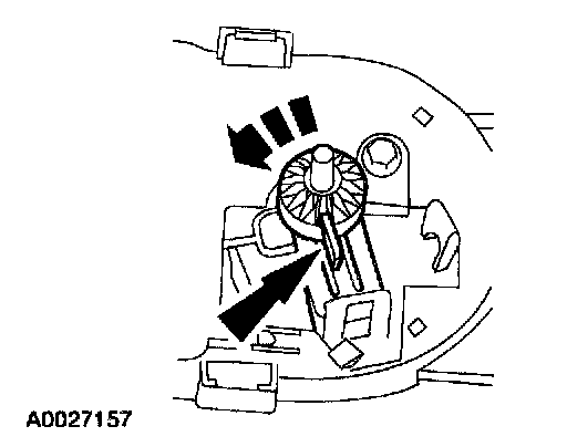 3. Depress the three tabs and remove the temperature blend door control cable.