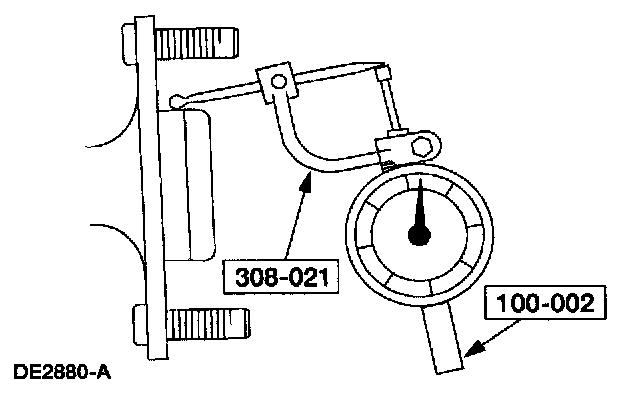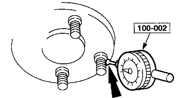 1. Position the special tools as close to the hub face as possible. Zero the indicator to allow the pointer to deflect either way.