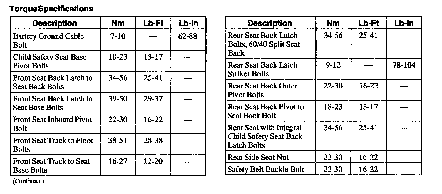 Torque Specifications:
