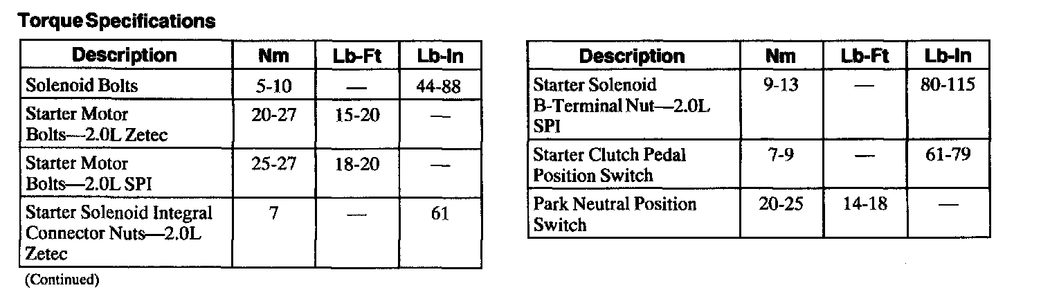 Torque Specifications: