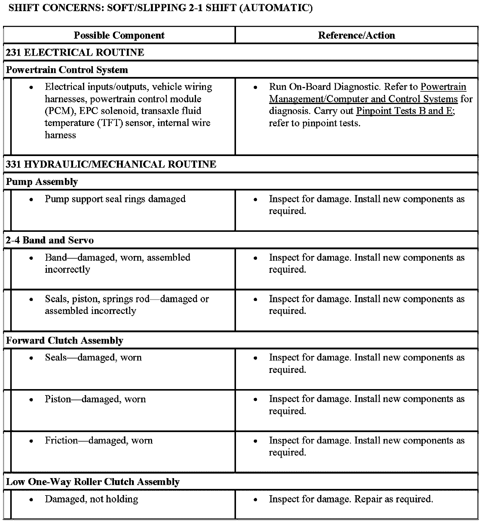 SHIFT CONCERNS: SOFT/SLIPPING 2-1 SHIFT (AUTOMATIC)