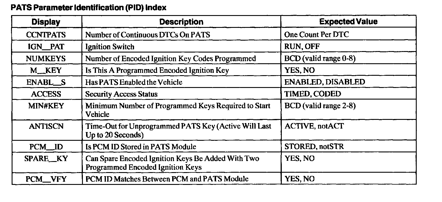 PATS Parameter Identification (PID) Index: