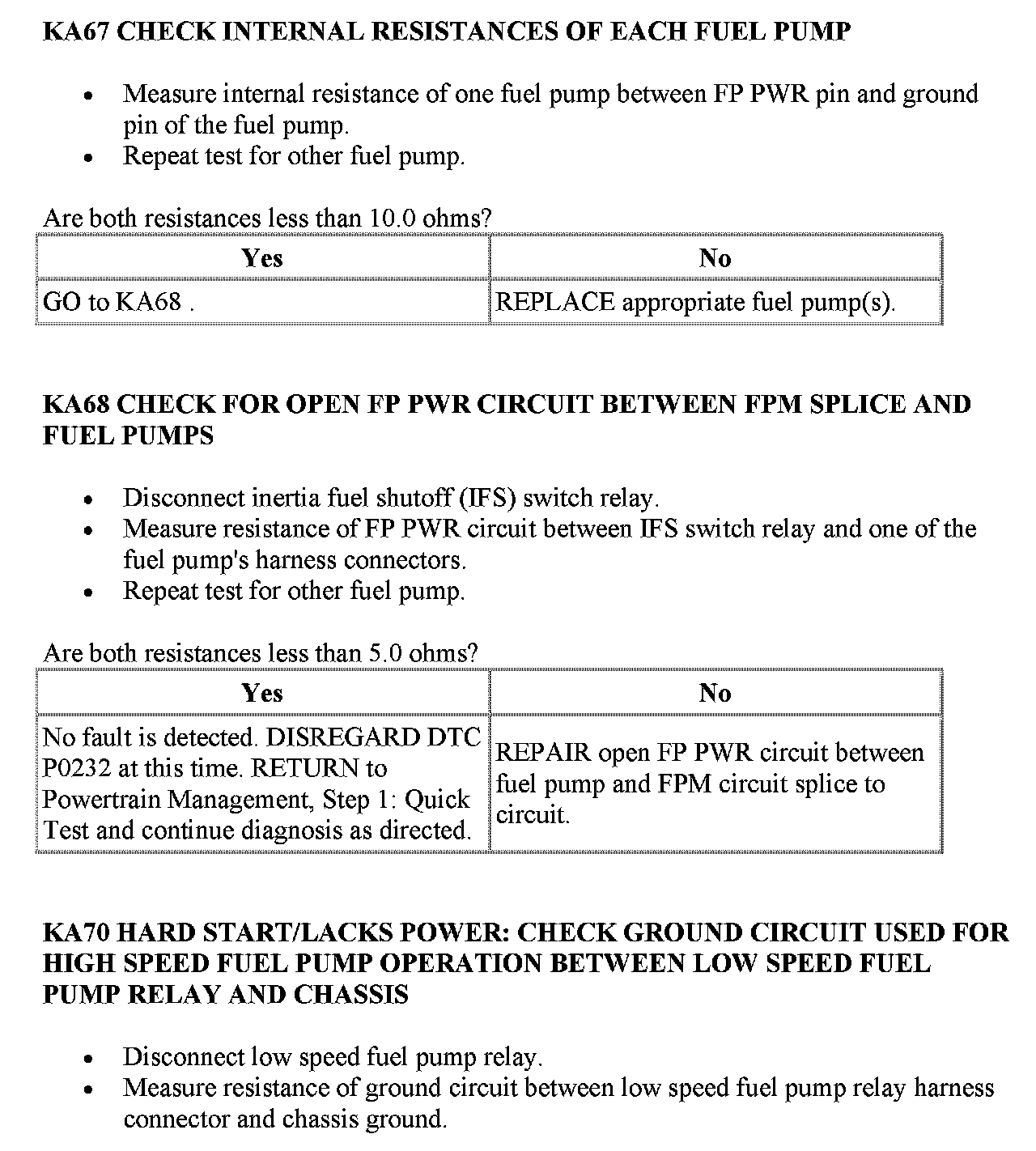 KA: Fuel Pump RelayPinpoint Test KA1 - KA3:
