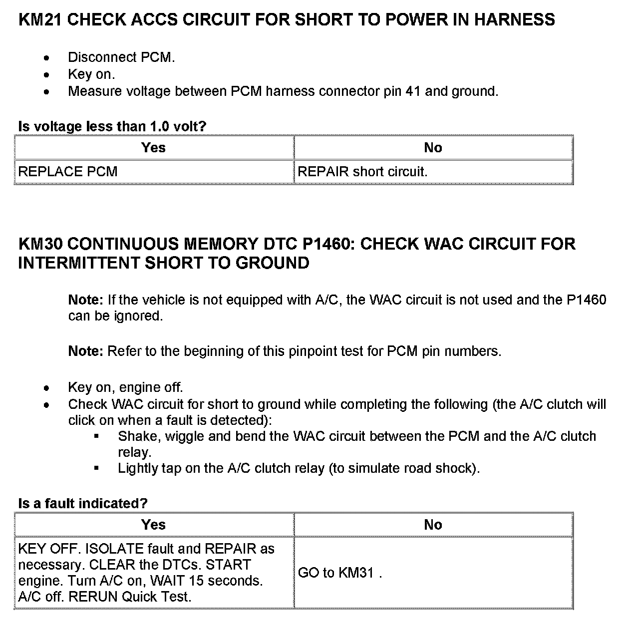 Tests KM: A/C Clutch Relay, A/C Circuits