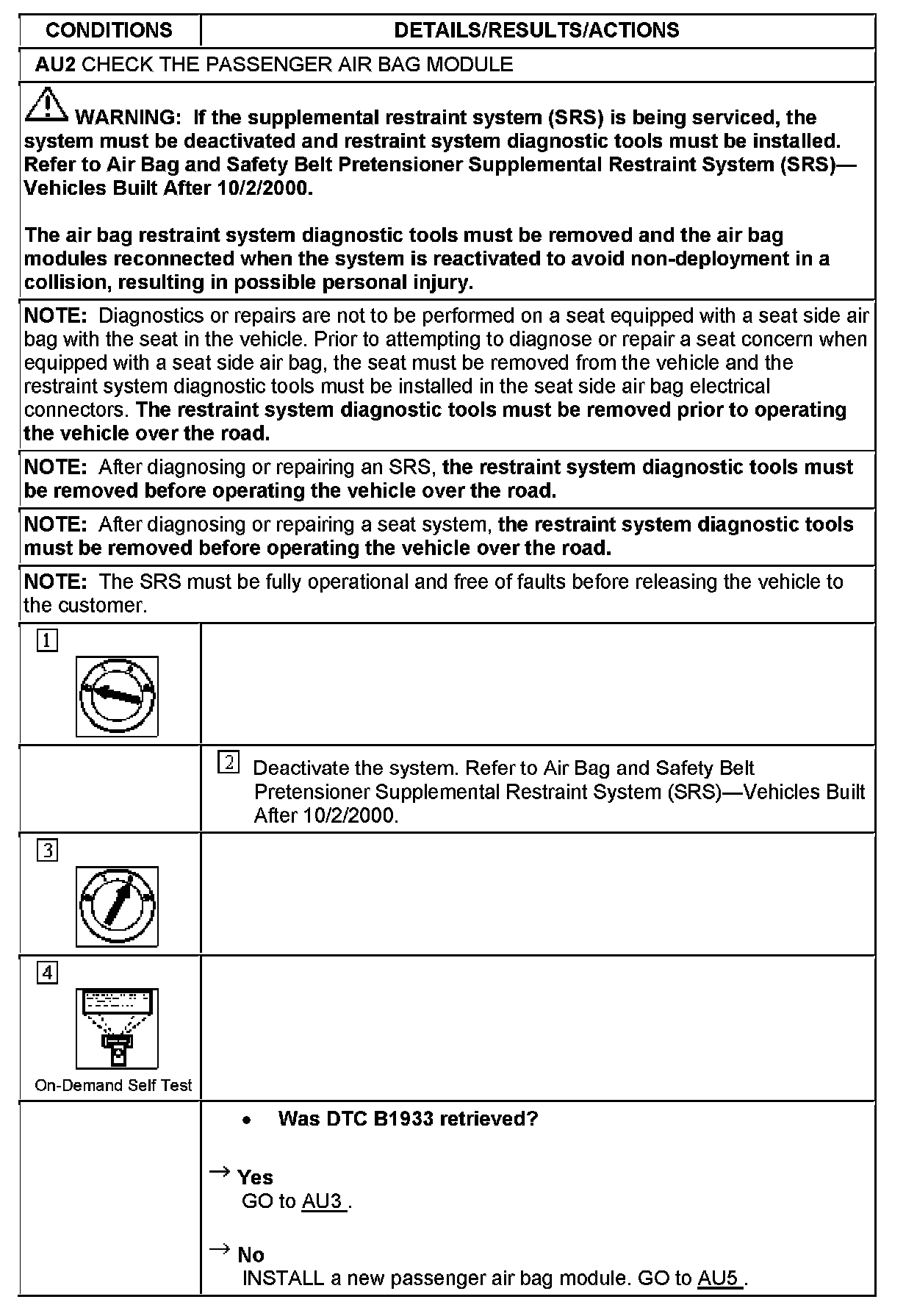 Tests AU: LFC 33/DTC B1933 - Passenger Air Bag CKT Resistance High