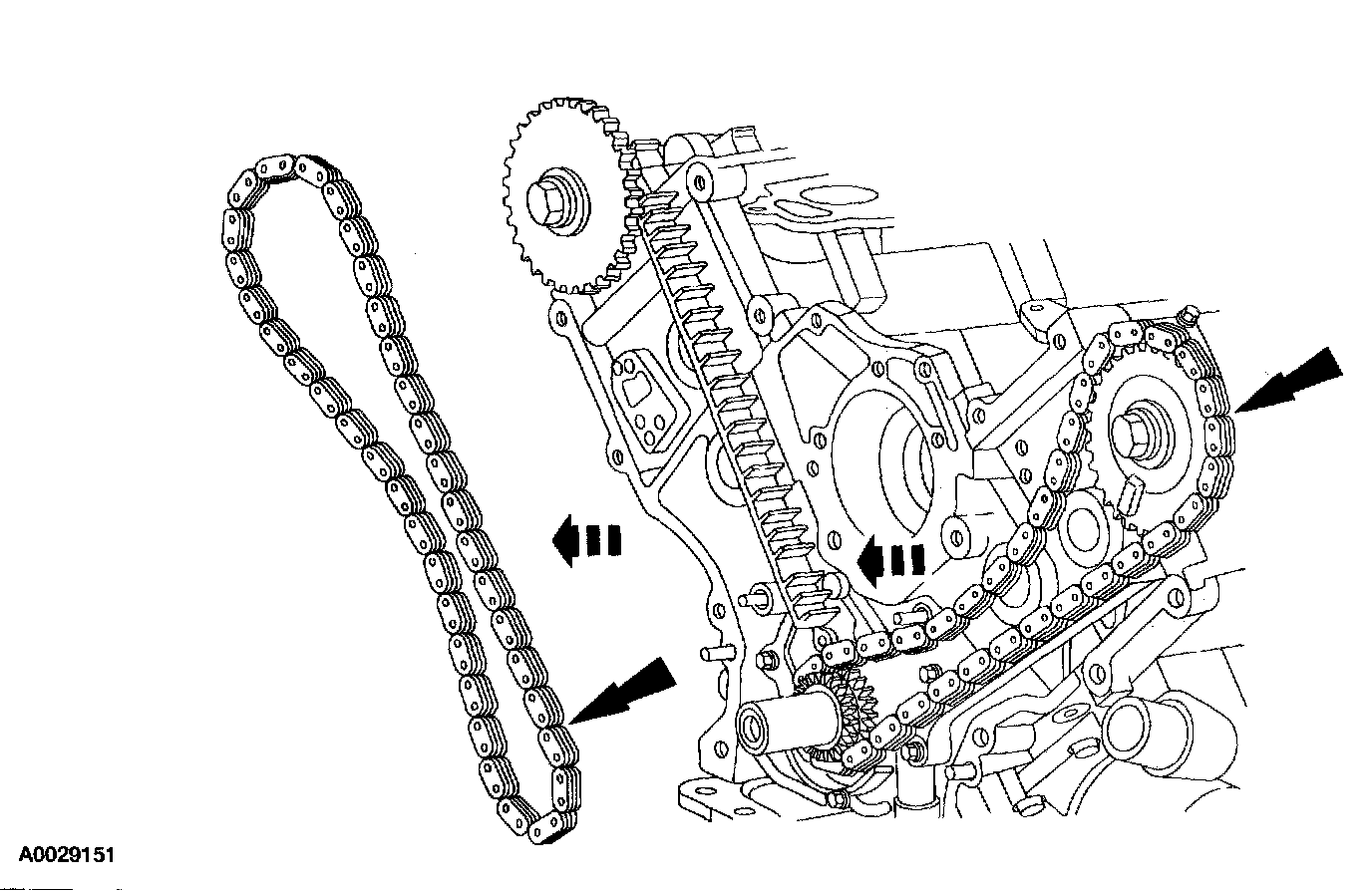 ^ Remove the RH timing chain and from the crankshaft sprocket.