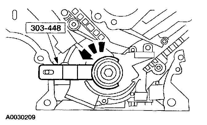 13. NOTE: If necessary, adjust the camshaft sprocket slightly to obtain timing mark alignment with the Camshaft Positioning Tool.