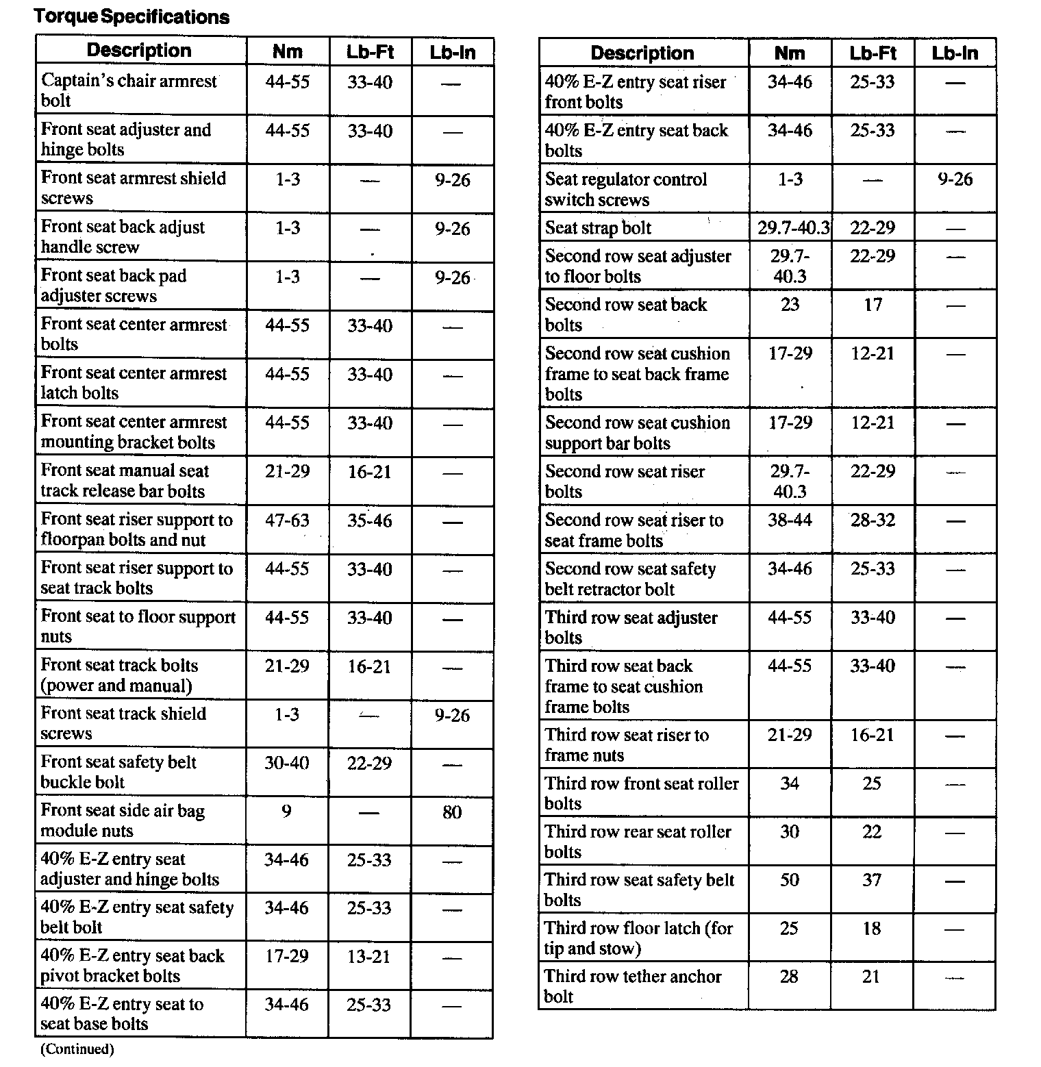 Torque Specifications: