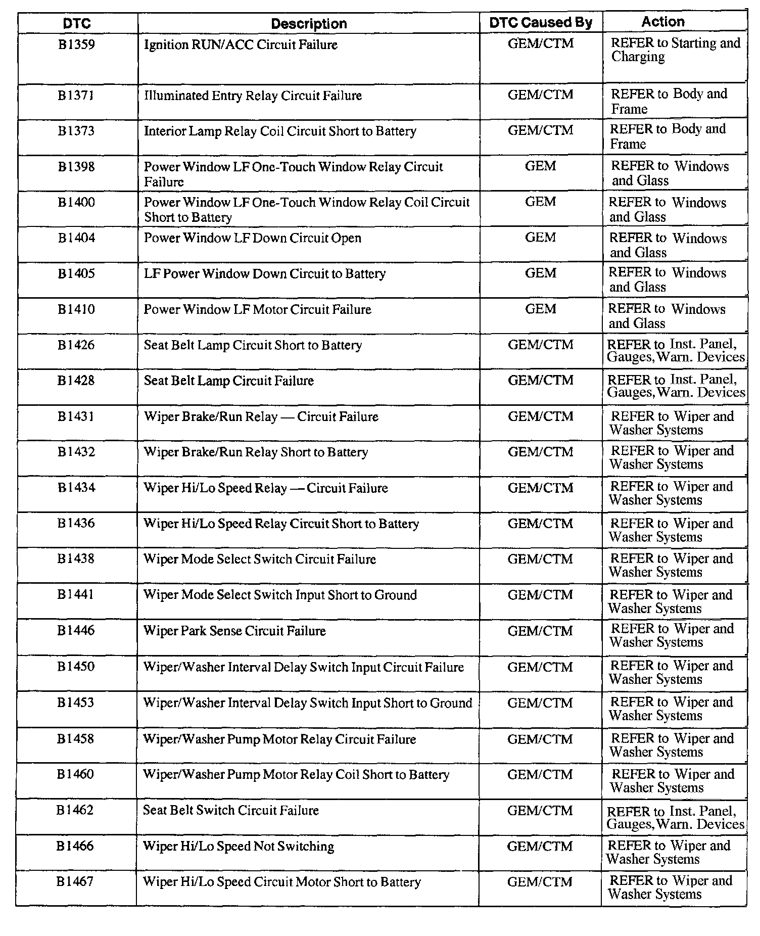 DTC B1359 Through B1467